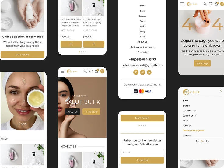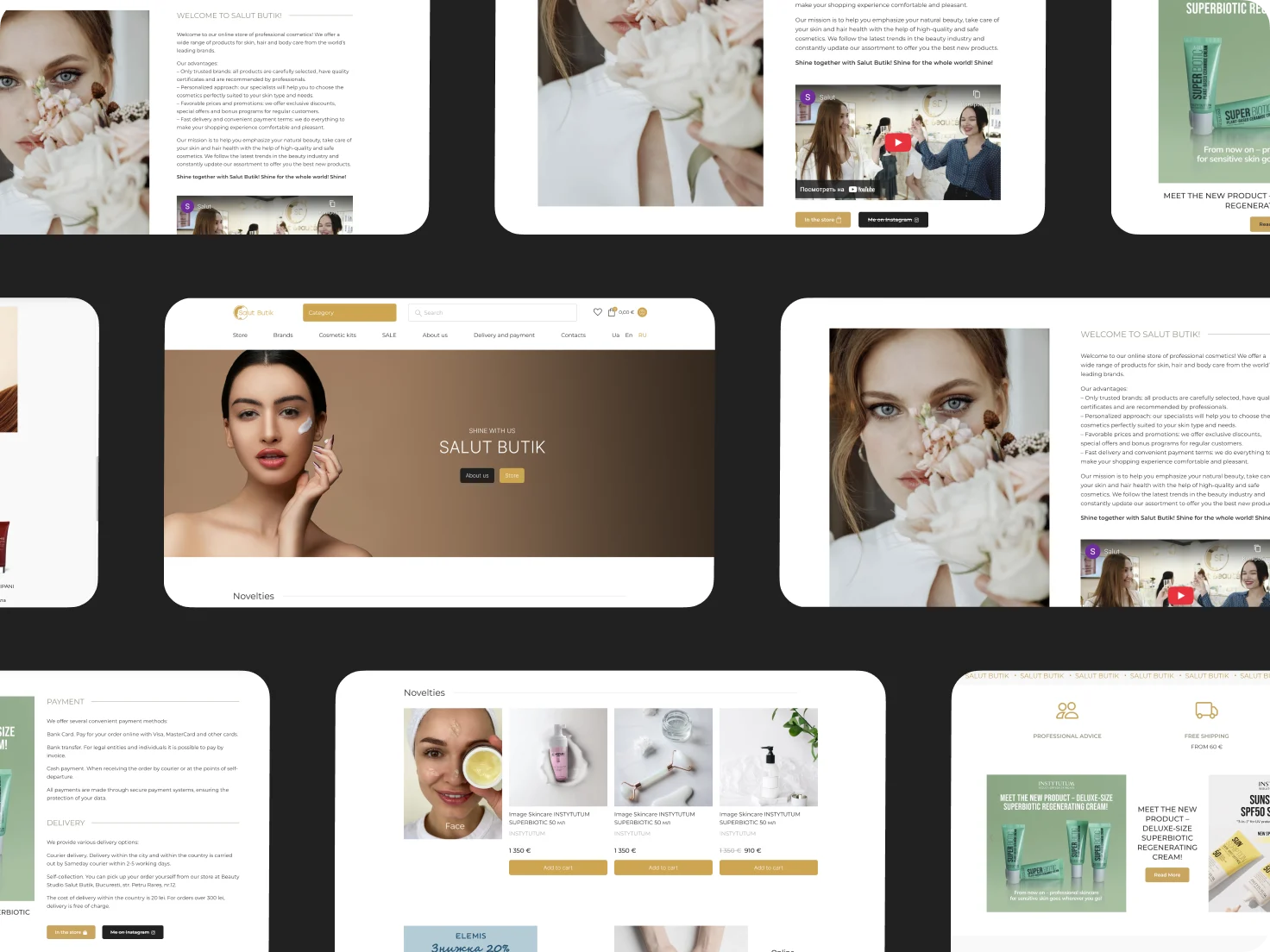 • The layouts of nudeface.com.ua and salut-butik.com inspired the website design.